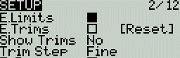 **E. Trims) Extended Trims -** Increases the maximum trim adjustment value from **±**&#x32;5% to **±**&#x31;00%.