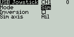 * Sim Axis options are: **Ail**, **Ele**, **Rud**, **Thr, Acc**, **Brk**, **Steer**, **Dpad**