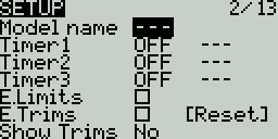 * **OFF** - The timer value is reset when switching models or when the radio is turned off / on.