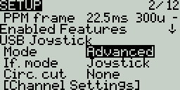 **If. mode (Interface mode):** This indicates to the target device (the device you are connecting your transmitter to) what type of device you are connecting. The options are **Joystick**, **Gamepad**, **MultiAxis.**