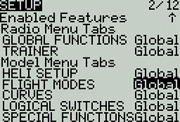 **Glob. Funcs** - When enabled, global functions programmed in the radio settings will apply to this model. When disabled, global functions will not apply to this model.