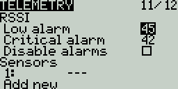 * **Low alarm** - The threshold value when the "RF signal low" voice prompt will be played. The recommended value is 45.