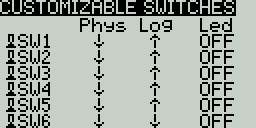 Selecting one of the Axis, Pots, or Switches lines from the list will allow you to add a 3 character label to the control as well as change the type of control as needed. Additionally, you can invert the direction of the Pots by selecting the **`->`** at the end of the line, which will then change to `<-` .