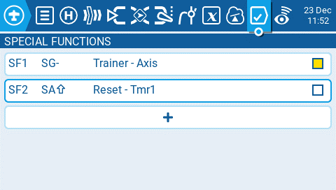 **Lua Script** - Executes the Lua script defined in the value field. The Lua script must be located in `/SCRIPTS/FUNCTIONS/` folder on the SD card. Lua scripts that display information on the screen cannot be executed with this special function.