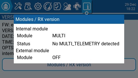 <figure><img src="https://77164042-files.gitbook.io/~/files/v0/b/gitbook-x-prod.appspot.com/o/spaces%2FUZeEhX4mYsDsoTCSjRyi%2Fuploads%2Fgit-blob-93a00a364658b210cf822a8bfe24ca5b30c55579%2FVersion2.jpg?alt=media" alt=""><figcaption><p>Modules / RX Version screen</p></figcaption></figure>